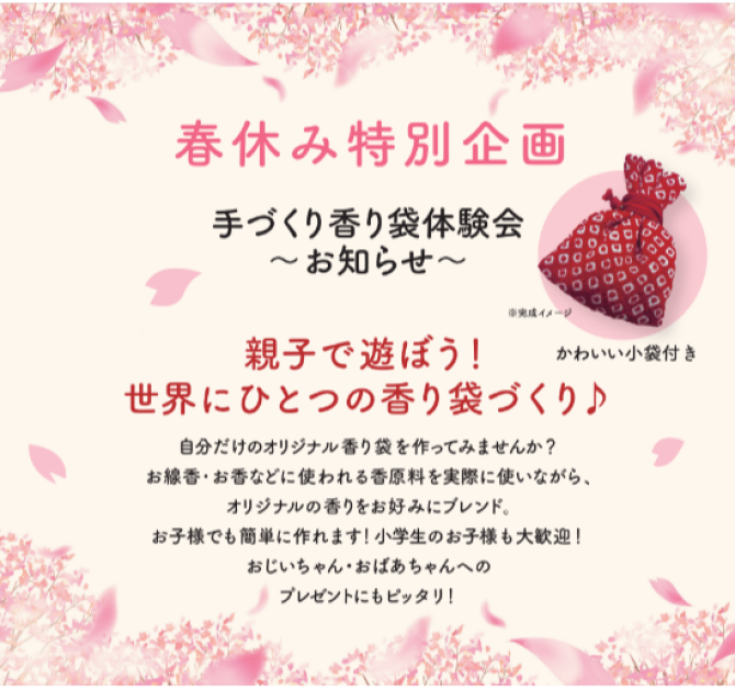 お線香やお香の原料から自分だけのオリジナルの香り袋作りを体験いただけます!