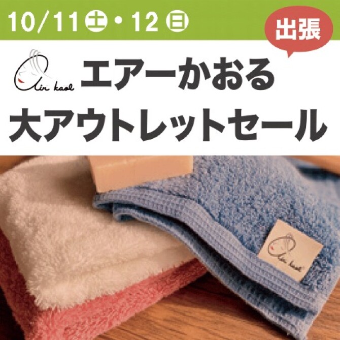 吸水力抜群な魔法のタオル「エアーかおる」の大アウトレットセールをカラフルタウンで開催!