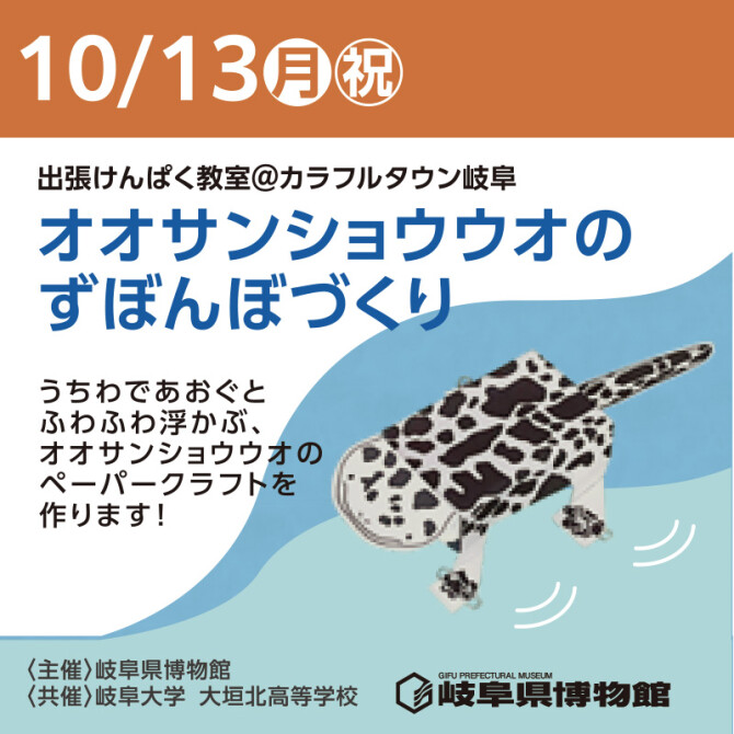 岐阜県博物館のけんぱく教室が、カラフルタウンに出張!博物館のワークショップを体験するチャンスです。お買い物ついでにお立ち寄りください。