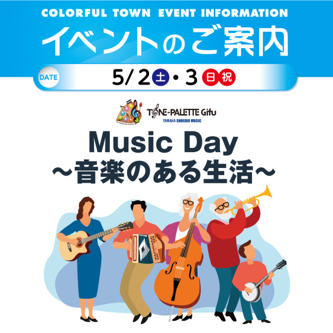 楽器体験コーナー、デジタルピアノ・ギター・サックスの楽器展示販売、ステージイベントなど音楽イベント盛りだくさんな2日間!音楽がある生活ってどんな感じ…?ぜひお気軽にお立ち寄りください😊💕